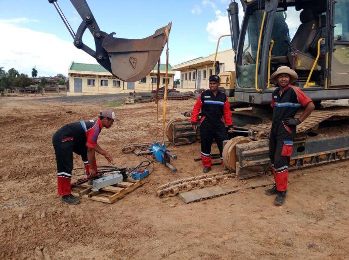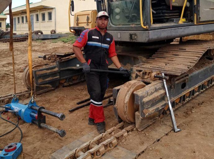 Materauto Equipment en mission technique à Toliara pour le remplacement de chenilles de la pelle Volvo EC300DL