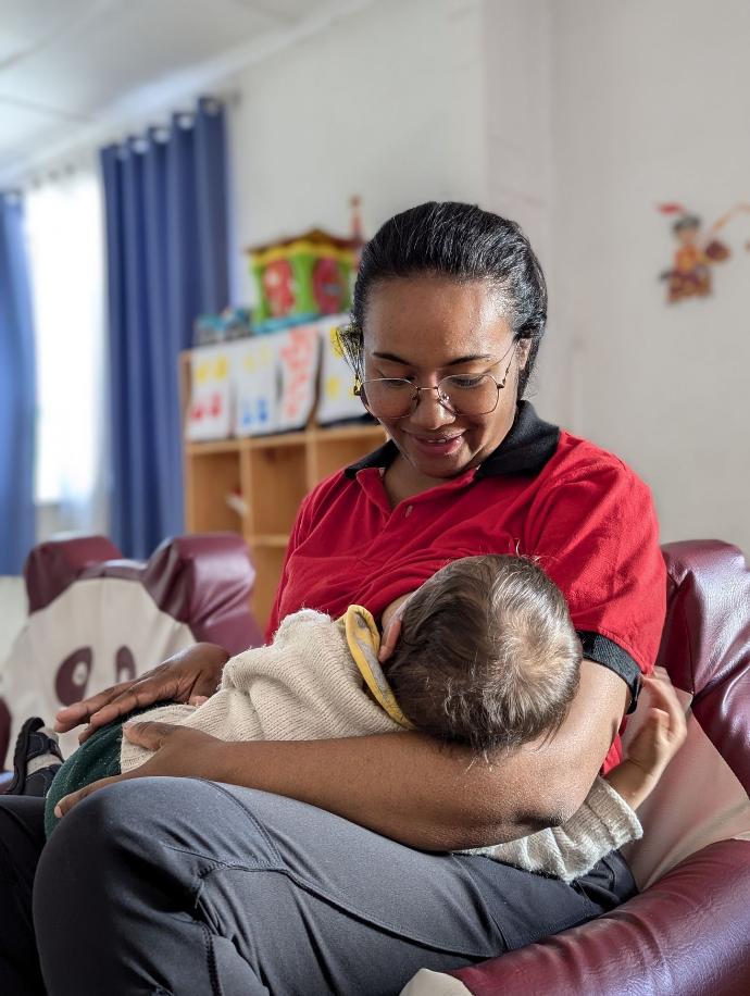 D’autre part, c’est aussi l’occasion, pour nous les mamans, de partager des astuces et expériences (alimentation, éducation et apprentissage des bébés) entre mère. Pendant les pauses d’allaitement, tous les mamans sont réunies, comme on le disait souvent les FI.RE.MA. (FIkambanan’ny REny MAmpinono). Avoir une crèche à disposition est un vrai plus pour moi."