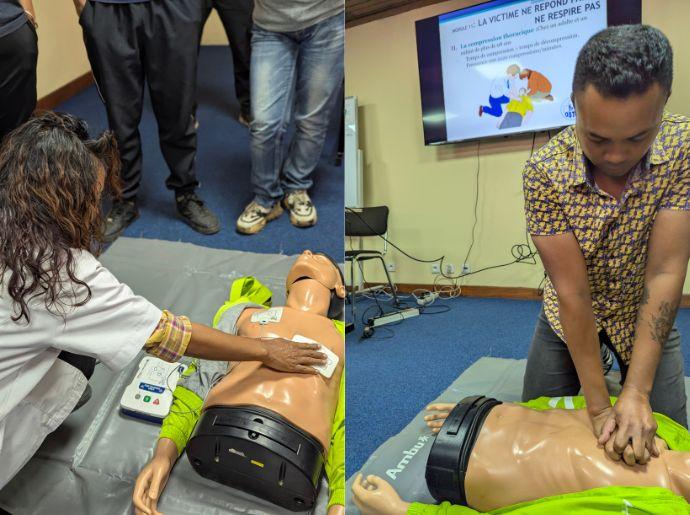 Le programme a débuté par l'apprentissage de l’identification des risques professionnels et les règles de protection individuelle et collective. Les participants ont ensuite appris à examiner une victime, à alerter les secours et à appliquer les gestes de premiers secours adaptés : arrêt d’une hémorragie, réanimation cardio-pulmonaire, position latérale de sécurité ou utilisation d’un défibrillateur.