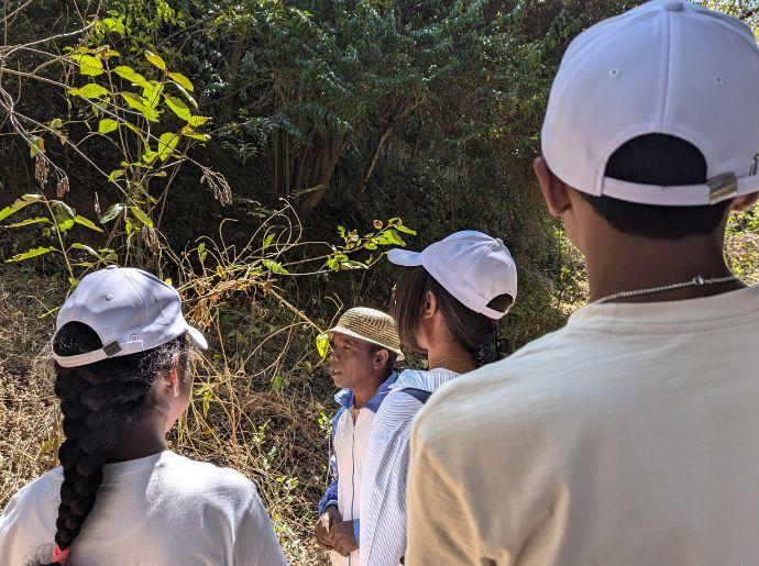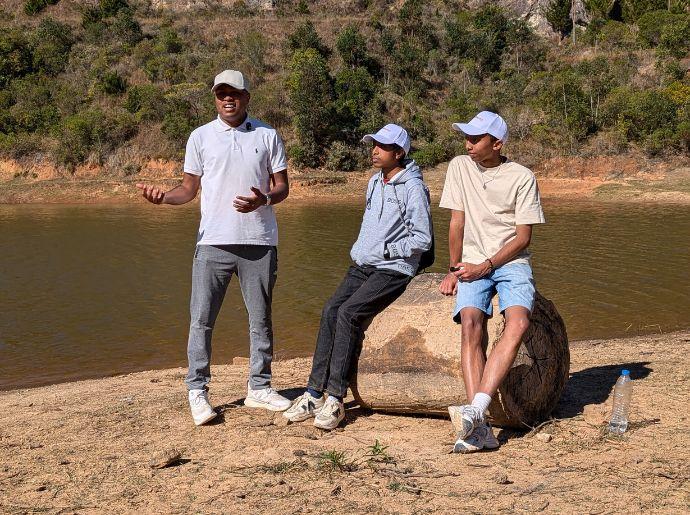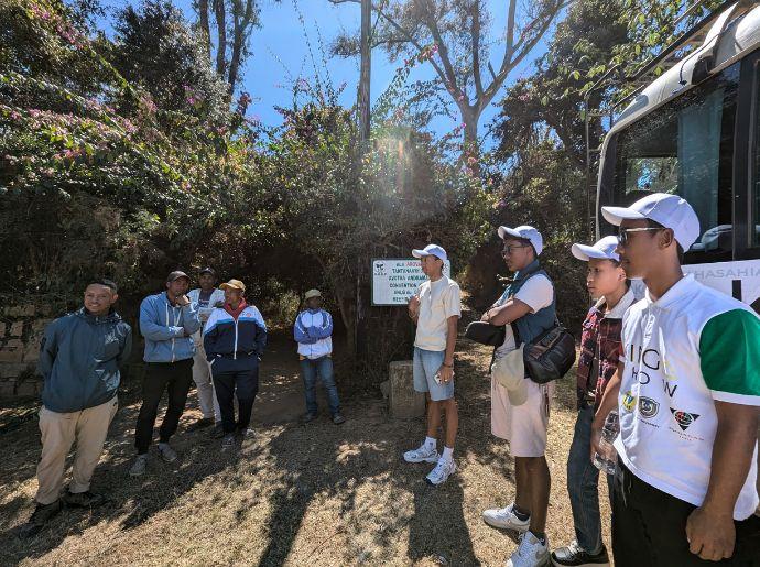 L’arrivée à Antampon’Andramasina s’est faite vers 10 h 30. Les jeunes ont été accueillis par l’équipe d’Avotra Andramasina : le secrétaire général Andriatsilavo, Ndriana, chef d’équipe pépiniériste, ainsi que Ramananjatovo, agent d’entretien et guide.