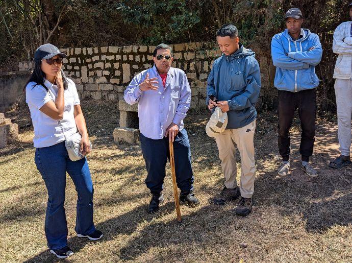 Vers 12 h 30, le groupe s’est dirigé vers le lac sépulcral d’Ambohimanjaka. L’association Avotra Andramasina y gère un deuxième site de pépinière ainsi qu’un espace de reboisement destiné aux plants issus des deux pépinières.