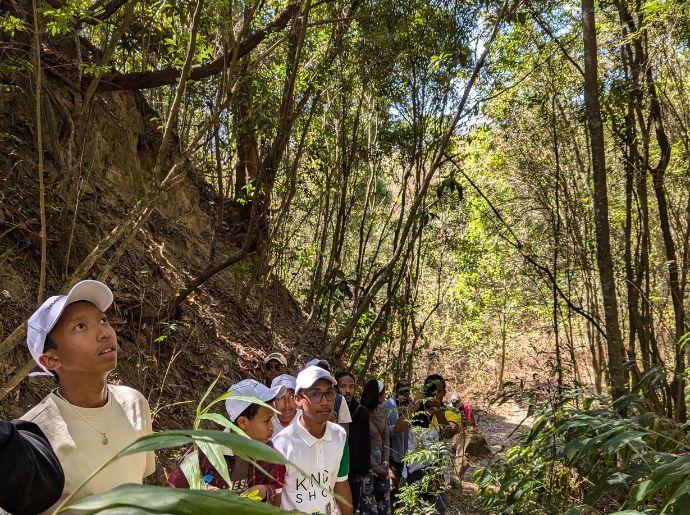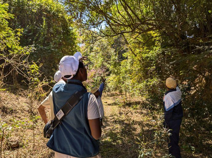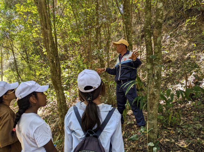 La visite a débuté à l’alan-dapa, la forêt princière protégée par Avotra Andramasina selon la convention n°901/16 ANLG du 05/08/16 MEEF/SG/DGF/DREEF. Les finalistes ont pu observer différentes espèces d’arbres zanatany, comprendre leur symbolisme et découvrir leurs vertus pharmaceutiques. L’étape suivante les a conduits à la pépinière surplombant la cascade Tsimanitimindrana. Sur ce site, les espèces locales sont multipliées et préservées.